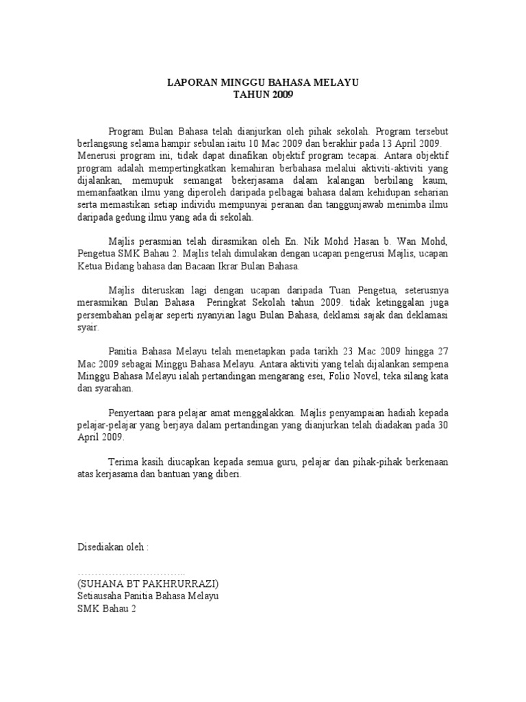 Laporan Minggu Bahasa Melayu Pdf